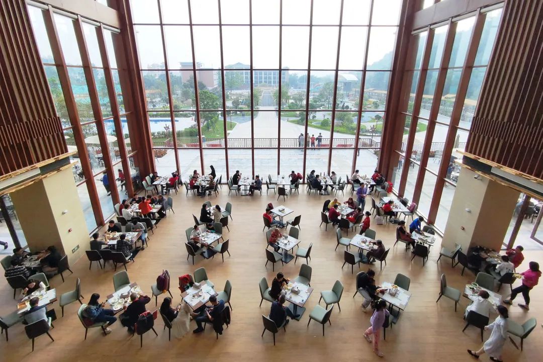 小镇内配备多功能宴会厅四个:智慧厅、明心厅、宁静厅、致远厅,自助餐厅一个、包间餐房十五个、儿童餐厅一个。餐厅内装潢格调静雅,设有1500+个餐位,想要私密空间还能选择包房!一家大小、公司聚餐都十分合适!!