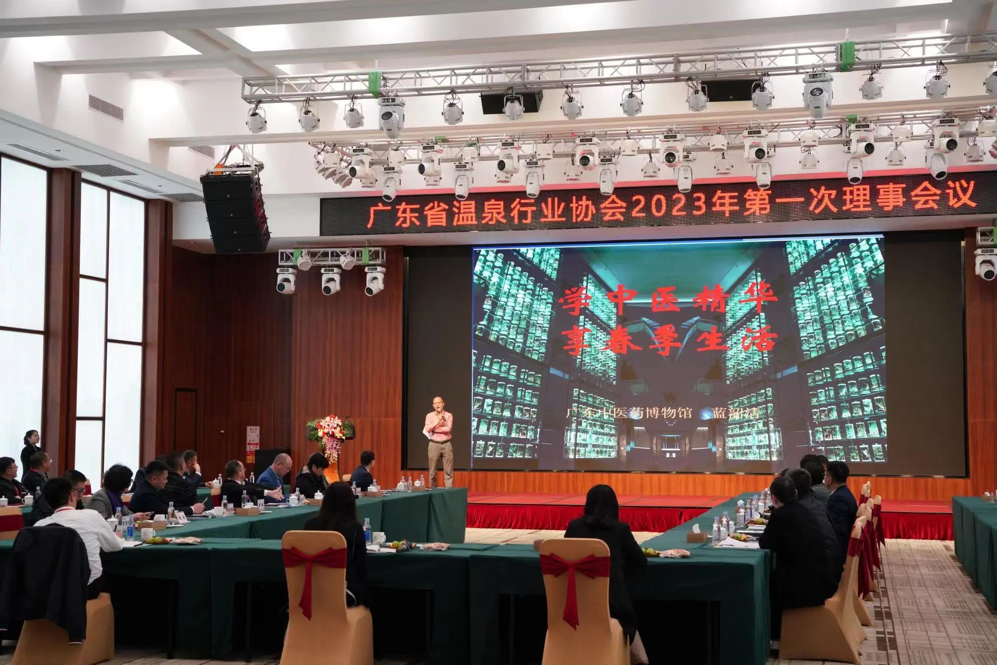 在专家讲座环节,广东中医药博物馆馆长蓝韶清以温泉与中医养生为主题进行了《学中医精华,享春季生活》的主题分享,深入浅出讲解了中医养生基本理论以及温泉与中医养生的关系,为温泉企业文化发展提供专业建议。