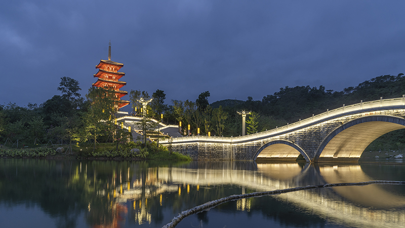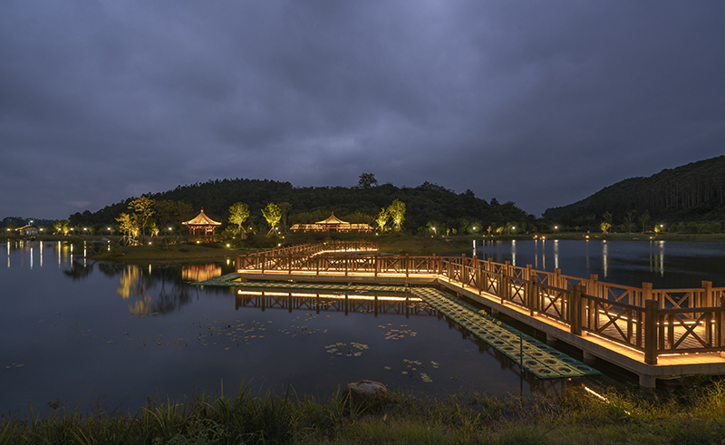 金台山公园是新兴县重要的生态保护园区,定位为新唐式风格,运用唐式建筑庄重大方、舒展而不张扬、古朴而富有活力的气质融合新兴经典禅文化的氛围,以“一轴两湖两溪五大区”作为园区的核心布局,打造以“禅”为文化依托的粤西地区公园新标杆。