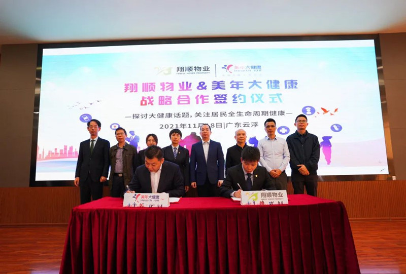 2021年11月18日,广东翔顺物业与美年大健康在翔顺控股集团办公楼签订全面战略合作协议,打造“物管+大健康”模式,共启健康服务新篇章。
