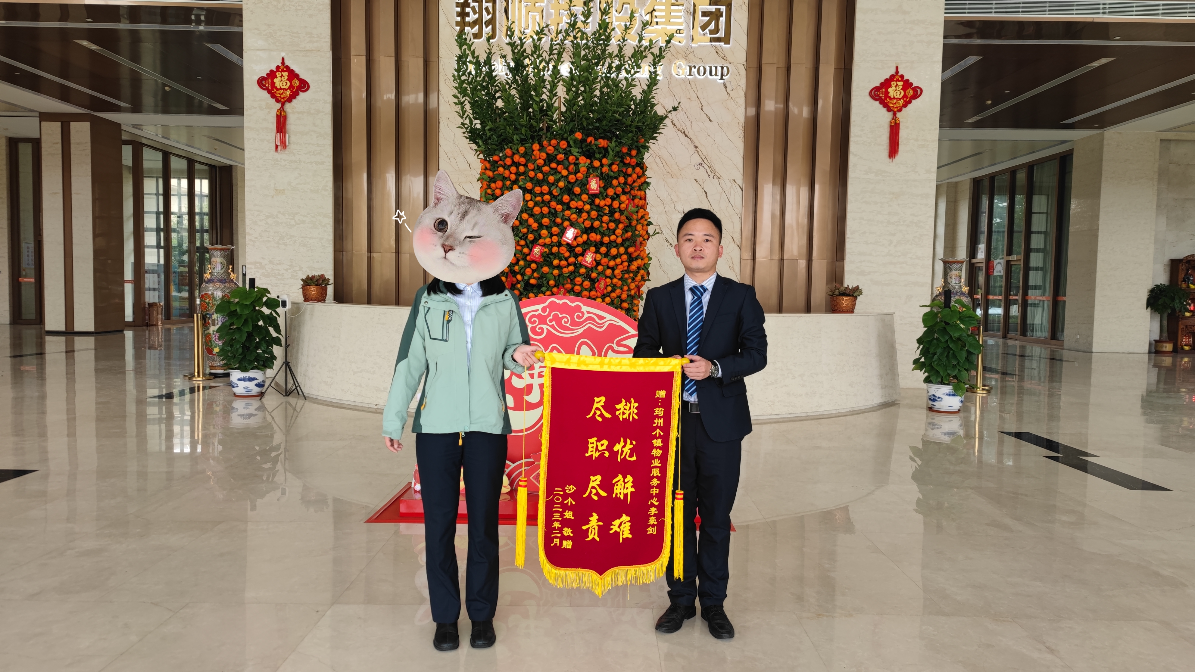 2月3日,翔顺集团综合园区副主管李豪剑收到园区一位住户送来的锦旗:2022年12月,该住户感染新冠病情严重,由于家中无人照顾,故向李豪剑求助。李豪剑立即从家赶往现场,护送该住户就医,期间一直陪护直至凌晨两点。