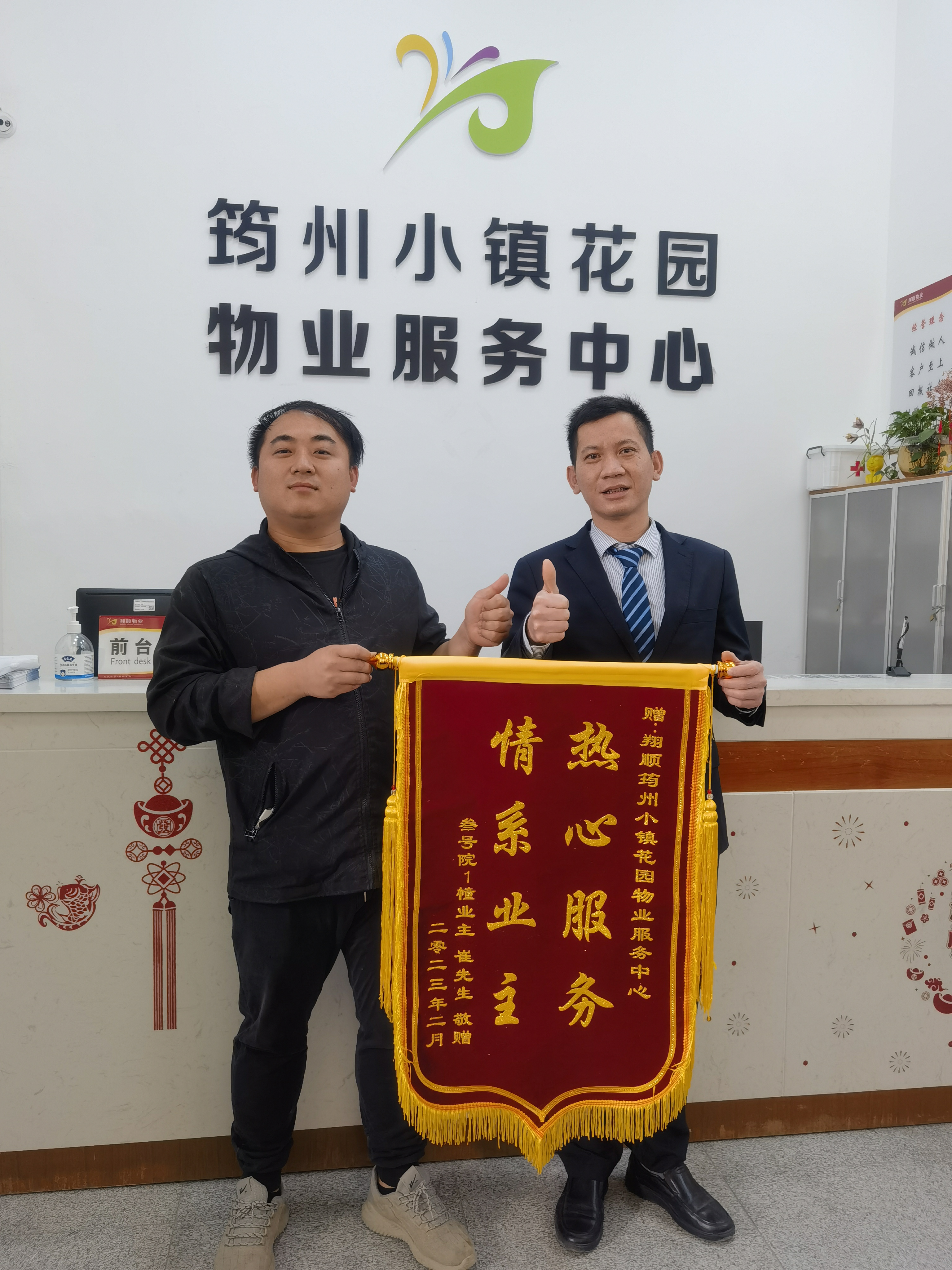 筠州小镇物业服务中心对业主的重视、对工作的认真负责得到了业主的认可,2月24日收到了业主送来的一面赞扬锦旗。