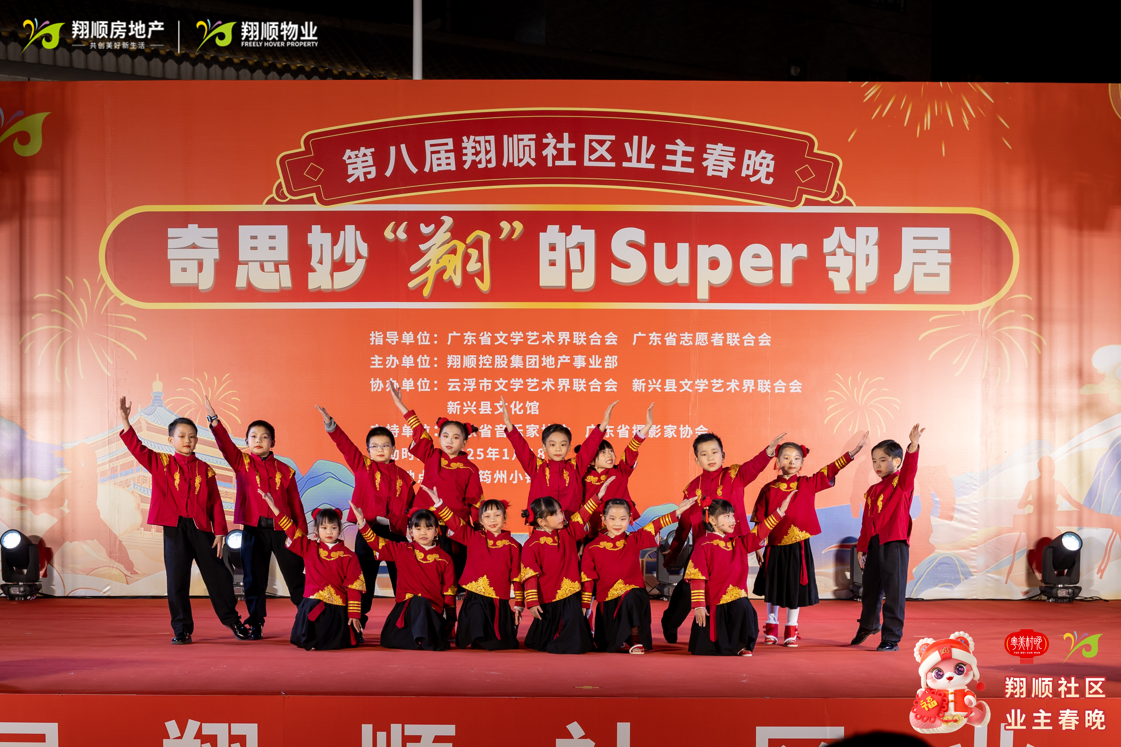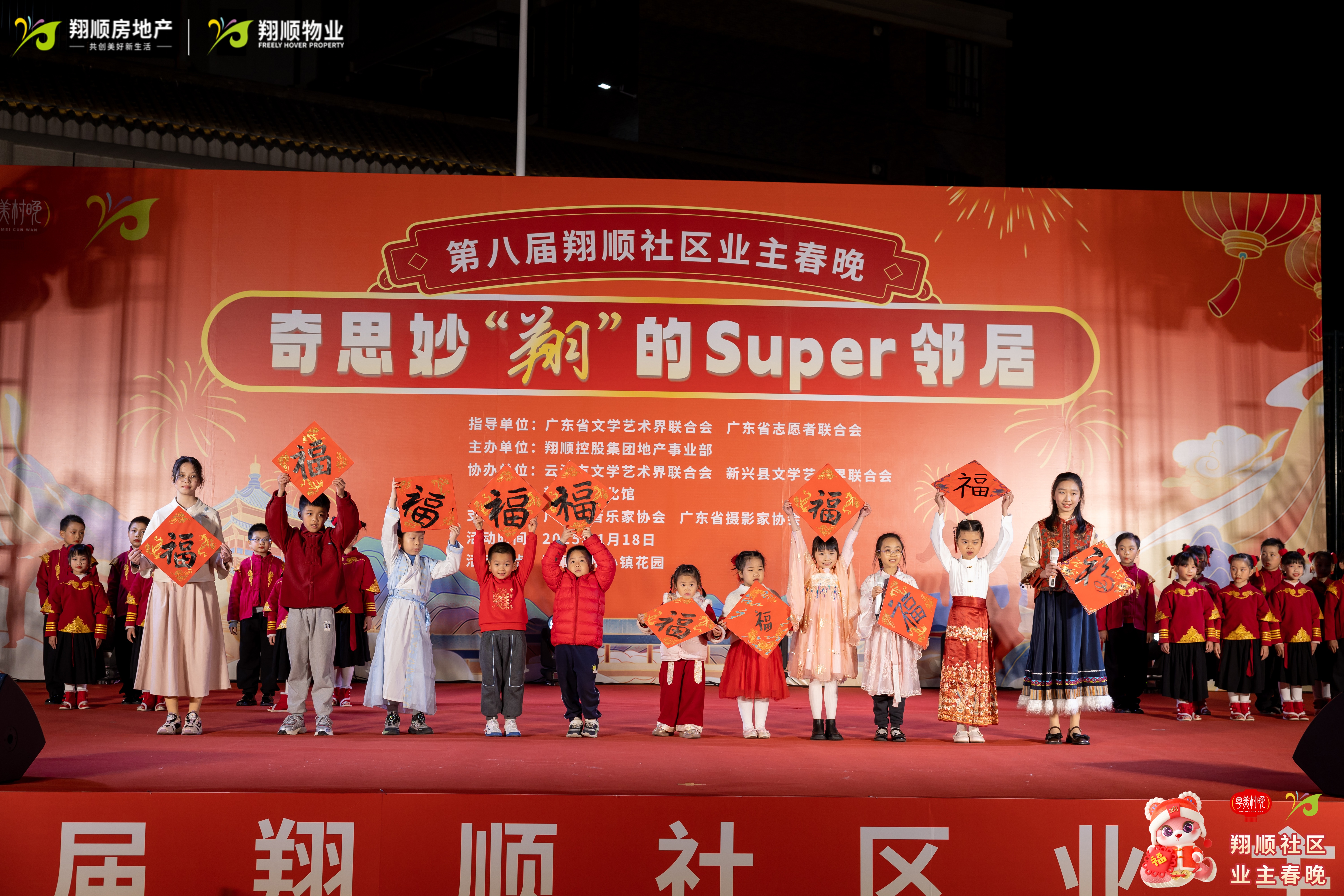 大红灯笼高高挂起,孩子们新写的福字散发着浓浓年味,业主联欢晚会舞台灯光闪烁,台下喝彩声、鼓掌声此起彼伏......1月18日「奇思妙“翔”的super邻居」2025年翔顺社区第八届业主春节联欢晚会在筠州小镇篮球场上演,节目由社区业主自编、自导、自演,为邻里街坊摆上了“年味超浓”的社区文化盛宴。