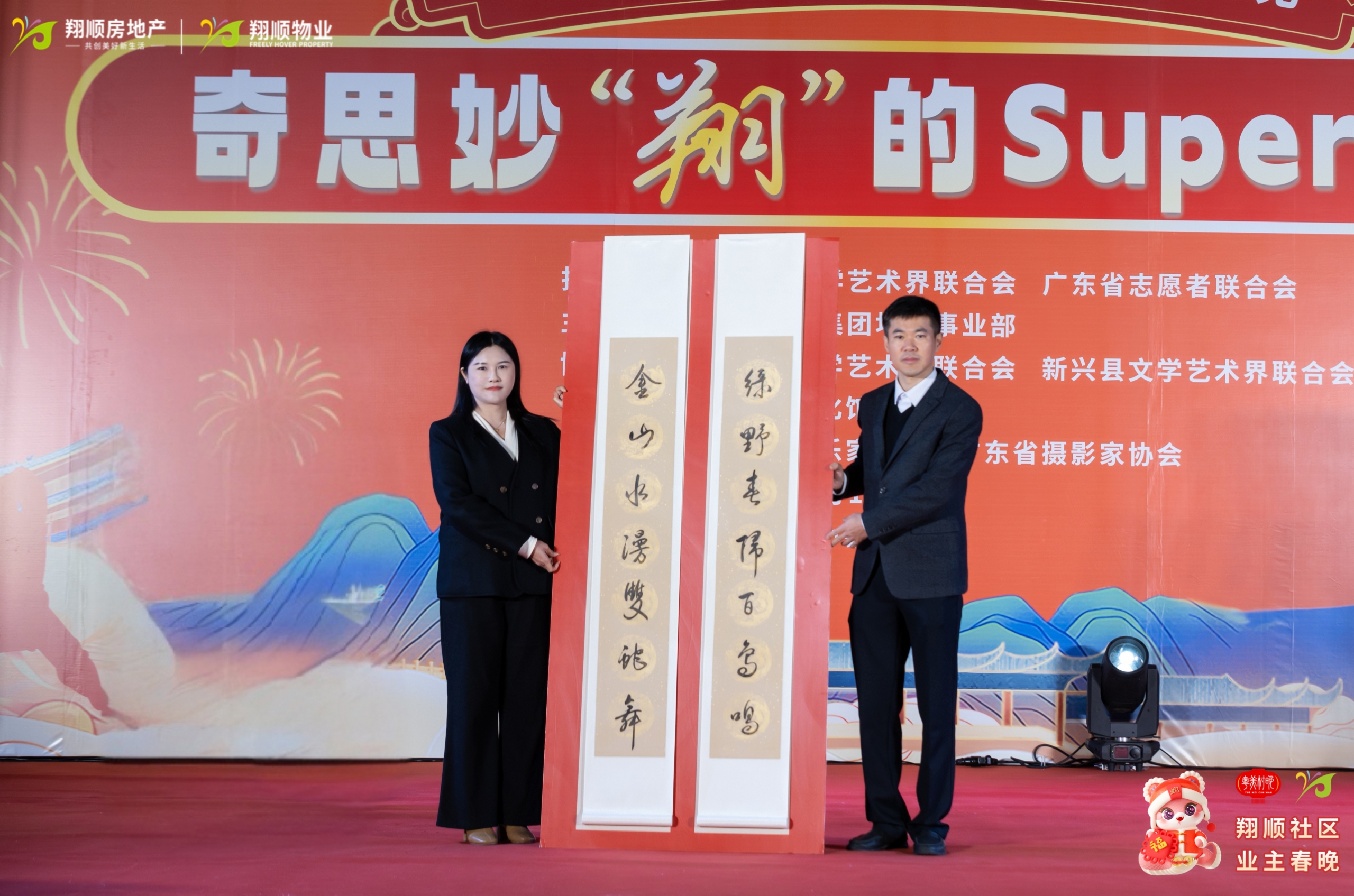 在这洋溢着浓浓年味的春节联欢晚会中,我们还收到了一份来自广东省文联、广东省志愿者联合会满载吉祥寓意的书法作品,相信在省文联、省志愿者联合会的祝福下,我们的社区必将迎来更加美好的未来。